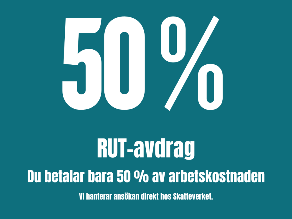 Det innebär att du endast betalar halva arbetskostnaden – vi drar av beloppet direkt på fakturan, så du slipper ligga ute med pengar.